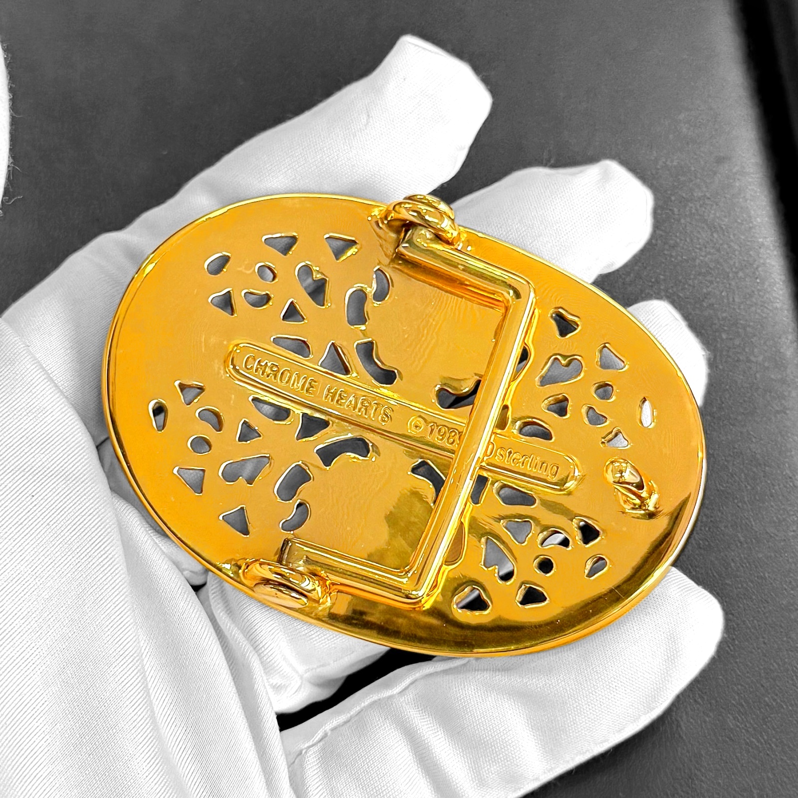 この技術は時計等でも見かけますが、当店の場合、クロムハーツの表面に本物の地金=22Kを蒸着させて仕上げますので、色味も22Kとなります。