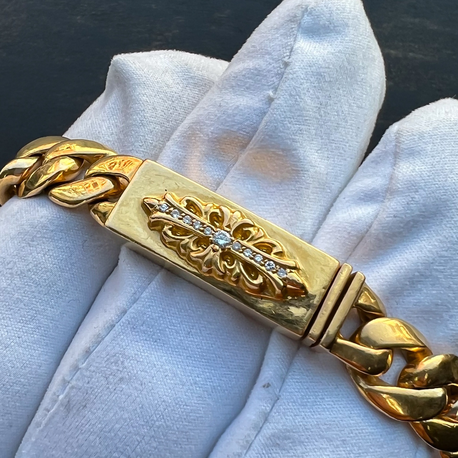 クロムハーツ 22K ベビークラシック フローラルIDブレスレット サイドパヴェ カスタム 完成♪