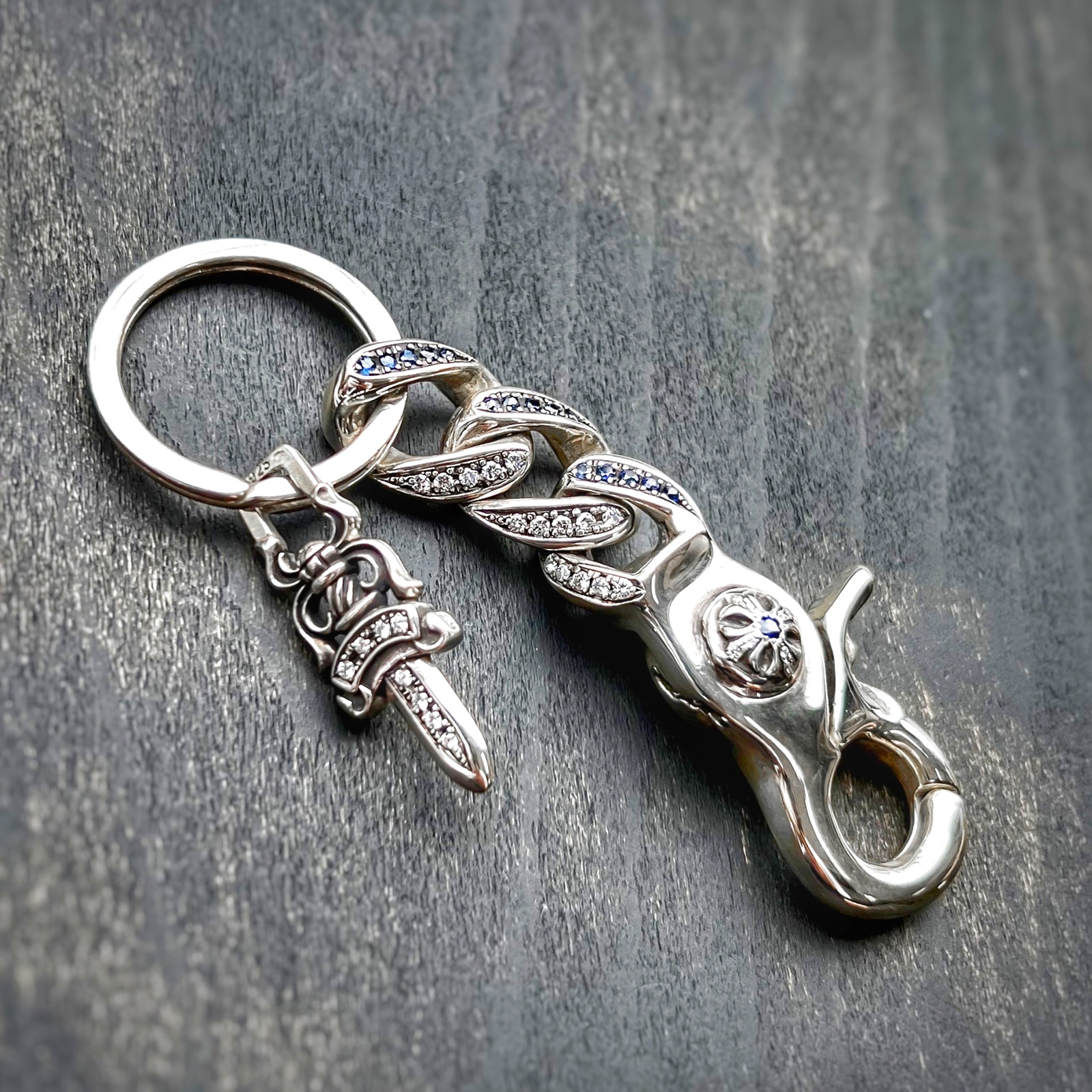 クロムハーツカスタム キーリング ショートクリップ ダイヤ / サファイア パヴェセッティング完成☆