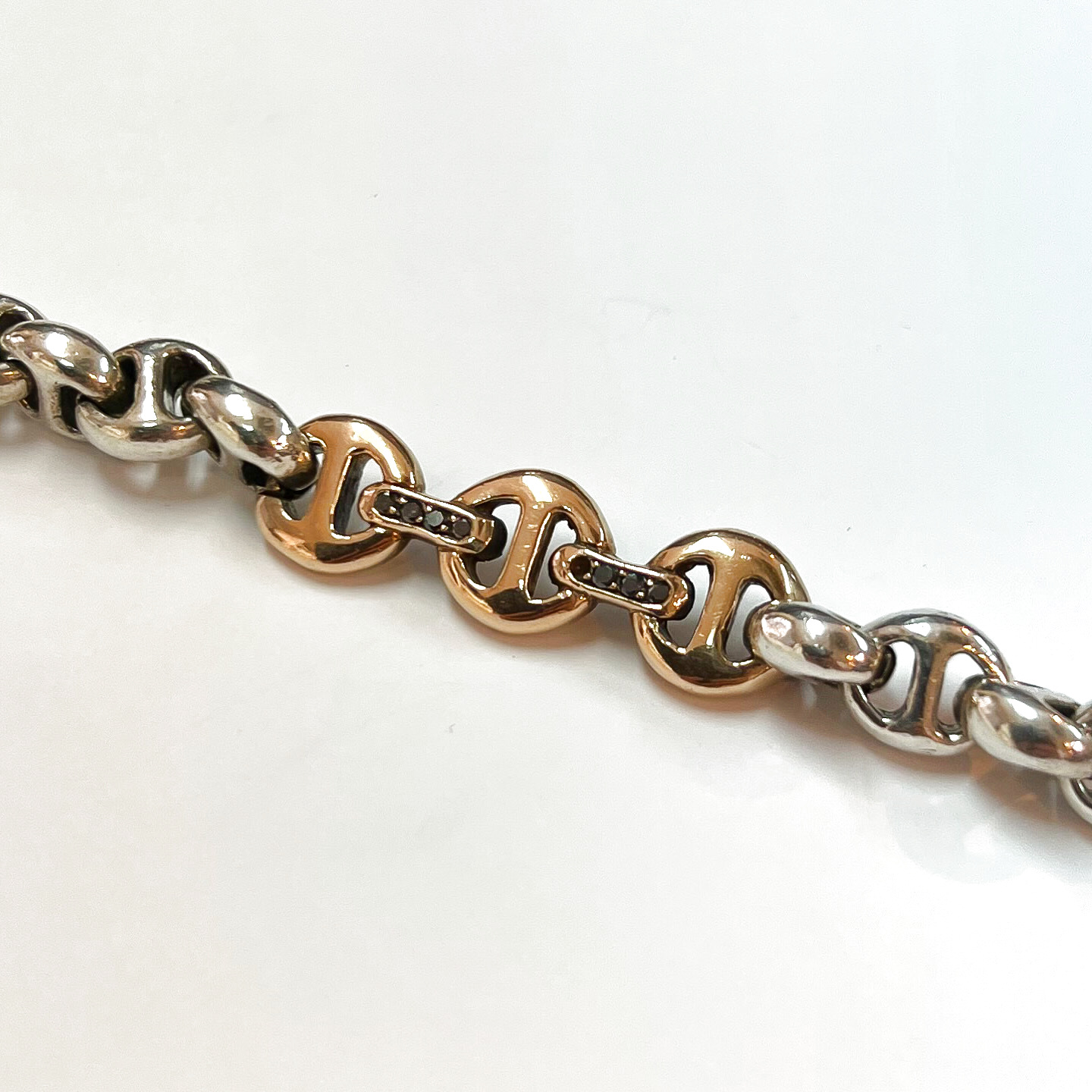 オープンリンク ウォレットチェーンのK18ゴールド部分に、ブラックダイヤモンドをカスタムした実績です!