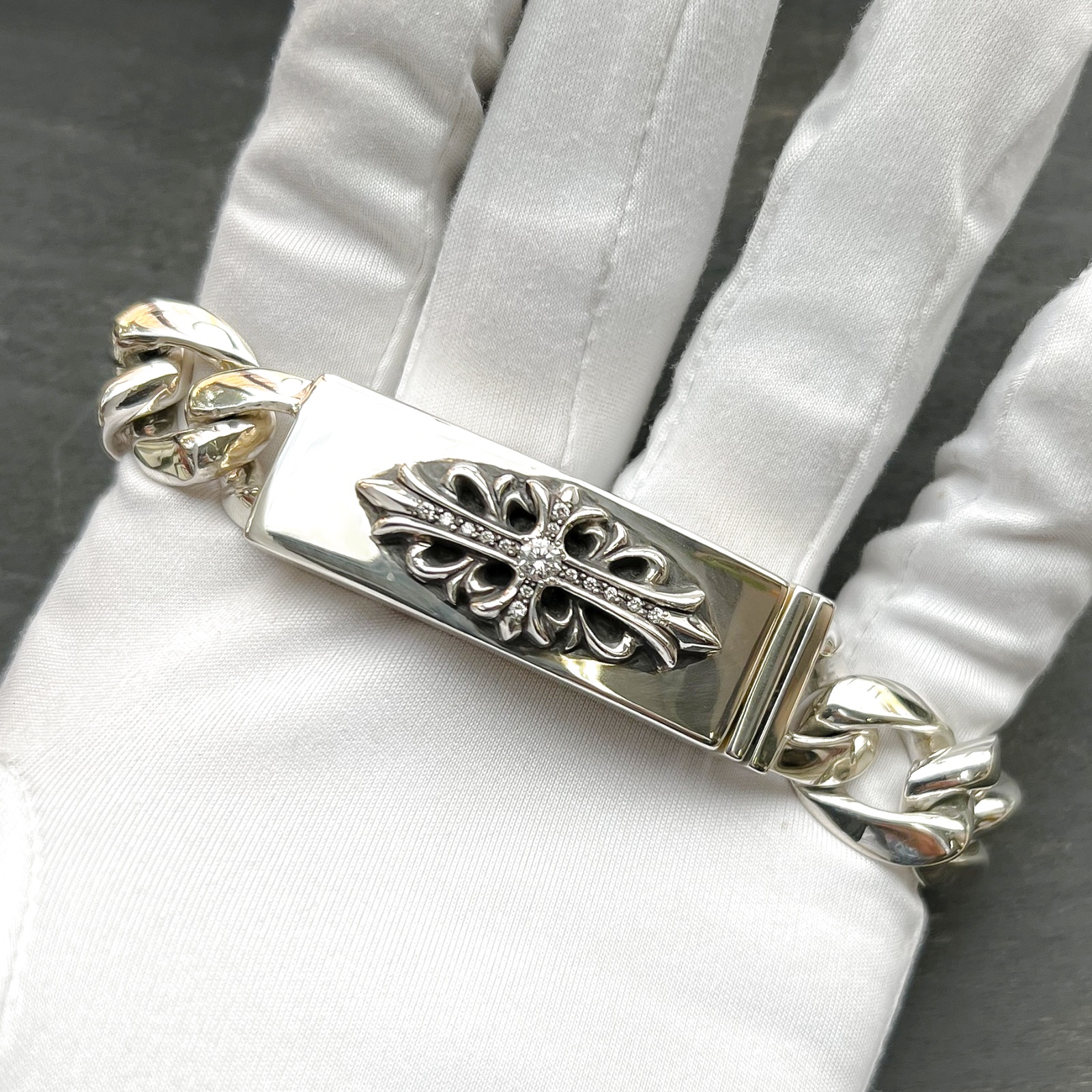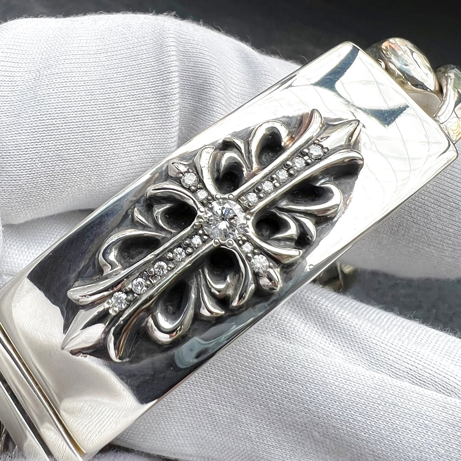 今日のご紹介するクロムハーツダイヤカスタムは、CHROME HEARTS IDブレスレット フローラルクロス パヴェダイヤモンドへのカスタマイズです☆
