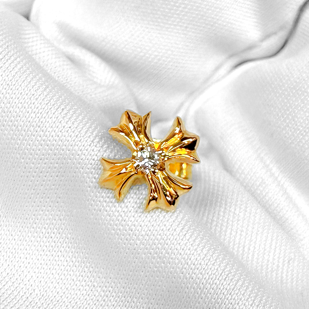 22K クロムハーツカスタム NO2 CHプラス スタッドピアス 1ダイヤモンド 完成!